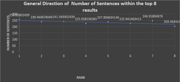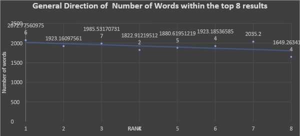 Comprehensive content wins. My dataset: the top 8 results averaged ~234 sentences; for SEO topics, it jumped to ~259. This variable showed the strongest correlation with higher rank (≈ -0.65; more sentences, better position).1 Long-form isn’t dead. It just can’t be fluffy.