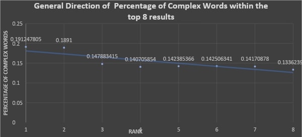 “Use common words” has been the mantra. But my data found a twist: top pages used more complex words on average (often ~15–18%), and that ratio correlated with higher rank within top results.1